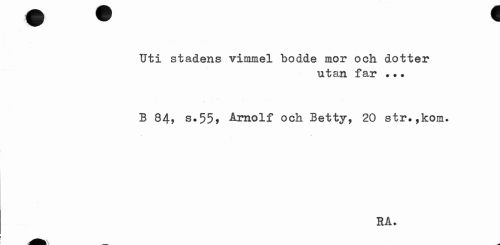 //// Uti stadens vimmel bodde mor och dotter //// utan far •?• //// / v \ //// B 84» s.55» Årnolf och Betty, 20 str.,kom. //// RA. ////
