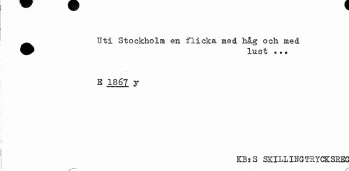 //// ^^ Uti Stockholm en flicka med håg och med //// lust ? • ? //// E 1867 j //// KB:S 3KILLINGTRYCKSREG //// x-—^ y ////