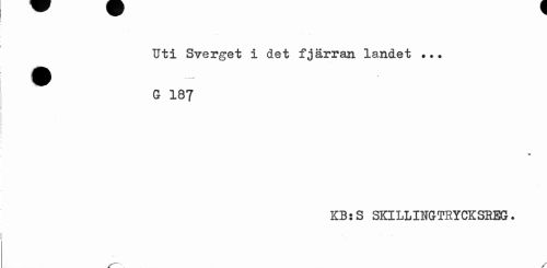 //// Uti Sverget i det fjärran landet ... //// G 187 //// ¦m //// KB:S SKILLINGTRYCKSREG. ////