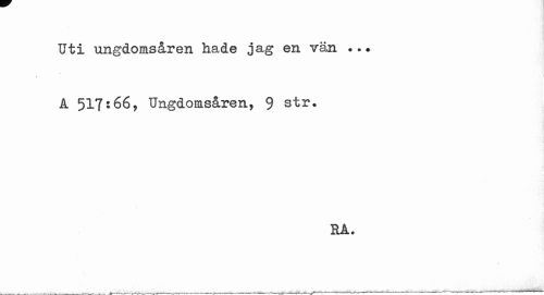 //// Uti ungdomsåren hade jag en vän ..• //// i //// A 517:66, Ungdomsåren, 9 str. //// ra. ////
