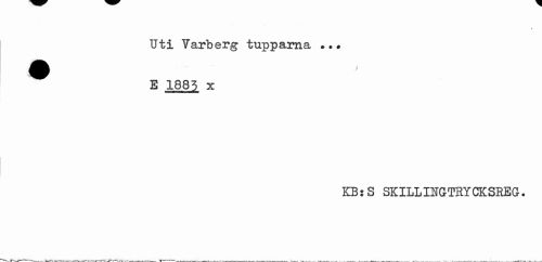 //// t //// Uti Varberg tupparna *.# //// '^jjjj^, //// E 1885 x //// KBjS SKILLINGTRYCKSREG. ////