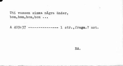//// \ //// Uti vassen simma några änder, bom,"bom,bom,bom ... //// A 409:37---*--- 1 str.,fragm.? not. //// RA. ////
