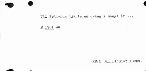 //// Uti Vetlanda tjänte en dräng i många år .. • //// E 1901 uu //// KB:S SKILLIIGTRYCKSREG. ////