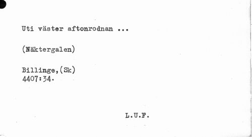 //// { //// L //// Uti väster aftonrodnan •.. (Näktergalen) //// \ i //// Billinge,(Sk) //// 4407:34- //// L.U.F. ////