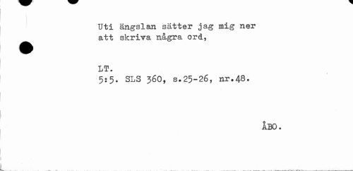 //// Uti ängslan sätter jag mig ner ^^ att skriva några ord., //// LT. //// 5s5. SLS 36O, s.25-26, nr.48. //// ÅBO. ////