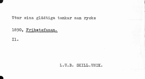 //// Utur sina glädtiga tankar man rycks //// 1890, Frihetsfanan* ii. //// i //// L.U.B. SKILL.UNIK. //// k ////