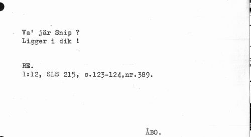 //// t i //// i //// * ¦ //// ¦ Va* jär Snip ? Ligger i dik 1 //// RE. //// 1:12, SLS 215, s.123-124,nr.J89. //// i //// ÅBO. ' ////