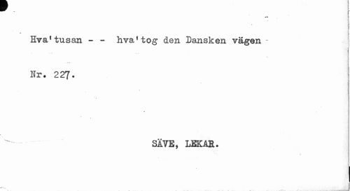 //// Eva'tusan - - hva'tog den Dansken vägen - ! //// Nr. 227. //// SÄVE, LEKAS. //// 1 ////