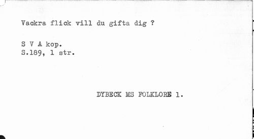 //// Vackra flick vill du gifta dig ? //// ¦ //// SVA kop. //// S.189» 1 str. //// DYBECK MS FOLKLORE 1. //// ! //// i ¦ //// ¦ ! ////