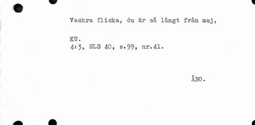 //// w //// Vackra flicka, du är så långt från mej, KU. //// 4:J, SLS 40, s.99, nr.41. //// ÅBO. //// * ////