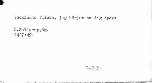 //// ¥ //// Vackraste flicka, jag "börjar om dig tycka *• * //// 0.Sallerup,Sk. //// 2427:49. //// L.TJ.F. //// % ...» 'u+M ////