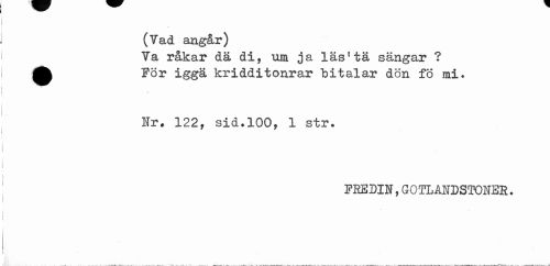 //// (Vad angår) //// Va råkar dä di, um ja läs!tä sängar ? ^ Por iggä kridditonrar bitalar don fö mi. //// Hr» 122, sid.100, 1 str. //// FKEDIN, GOfLMDSTOHEE. ////