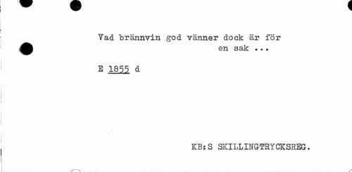 //// Vad brännvin god vänner dock är för /^p en sak •«? //// E 1855 d //// KB:S SKILLIHGTRYCKSREG. //// x' »v v ////