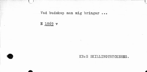 //// Vad budskap man mig bringar ... //// E 1869 v //// s //// % //// KB: S SKILLINGTRYCKSKEG. ////