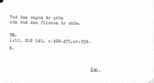 //// i //// i //// Vad den ängen är grön //// och vad den flickan är skön. //// TE. //// 1:12, SLS 542, s.468-470,nr.258. //// ET. | //// ÅBO. //// j* ^rf, uu v ' 4 t - * * ////