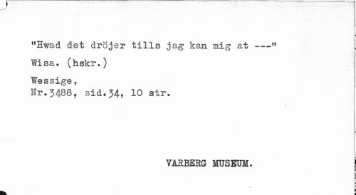 //// "Hwad det dröjer tills jag kan mig at---" //// Wisa. (hskr.) ¥e s sige, //// Ir.3488, sid. 34, 10 str. //// VARBERG MUSEUM. j //// % r ////
