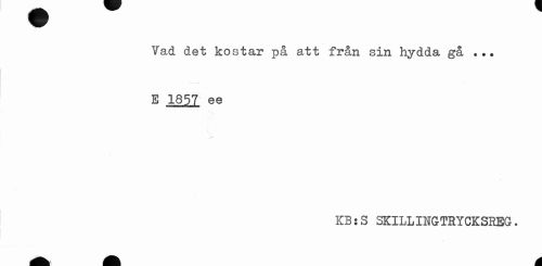 //// Vad det kostar på att från sin hydda gå ... E 1857 ee //// KB:S SKILLINGTRYCKSREG. ////