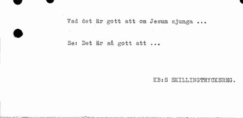 //// Vad det är gott att om Jesum sjunga //// ) //// Se: Det är så gott att ... //// KB:S SKILLINGTBYCKSREG. ////