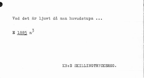 //// 9 //// • i Vad det är ljuvt då man huvudstupa ... //// E 1885 n* //// KB:S SKILLINGTRYCKSREG. //// I ////