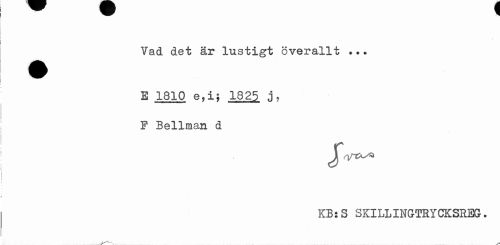 //// Vad det är lustigt överallt .. ? //// E 1810 e,i} 1825 j, //// P Bellman d //// Jfnrt^ //// KB:S SKILLINGTRYCKSRSG. ////