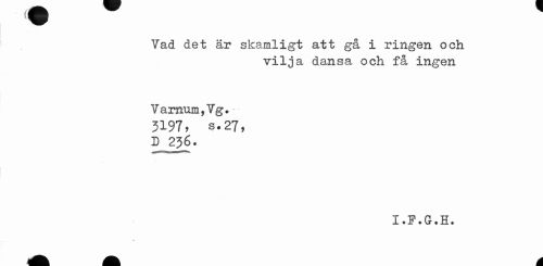 //// Vad det är skamligt att gå i ringen och //// vilja dansa och få ingen //// Varnum,Vg*- //// 5197, 8.27, D256. ////