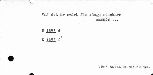 //// Vad det är svårt för många stackars //// mammor ..» //// N 1853 d E 1855 f5 //// KB:S SKILLINGTRYCKSEEG. ////