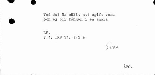 //// Vad det är sällt att ogift vara ^^ och ej "bli fången i en snara //// LF. //// 7:4, IHE 94, s,2 a. //// ÅBO. ////