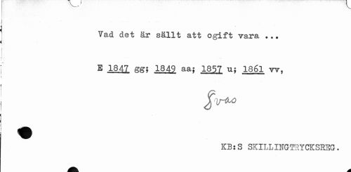 //// Vad det är sällt att ogift vara ... E 1847 gg; 1849 aa; 1857 u; 1861 w, //// KB:S SKILLINGTRYCKSREG. ////
