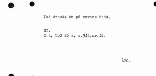 //// Vad drömde du på tuvans bädd, SJ. //// 2:4, SLS 26 a, s.344,nr.48. //// ÅBO. ////