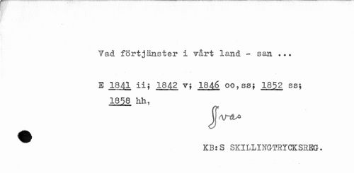 //// Vad förtjänster i vårt land - san //// E 1341 ii; 1842 v; 1846 oo,ss; 1852 ss; //// J^ArA^ //// ^ KB: S SKILLINGTRYCKSHEG. ////