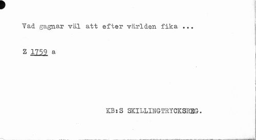 //// w //// I //// Vad gagnar väl att efter världen fika ... //// Z 1759 a //// \ //// i //// KB:S SKILLIHGTRYCKSHEG. ////
