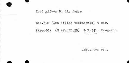 //// Hvad gifver Du din fader //// Sid.33,8 (Den lillas testamente) 5 str. //// (Arv/.88) (G.Afz.II,55) DgP.341. Fragment. //// —11. - - 1 , //// ARW.MS.VS 2:1. //// / ////