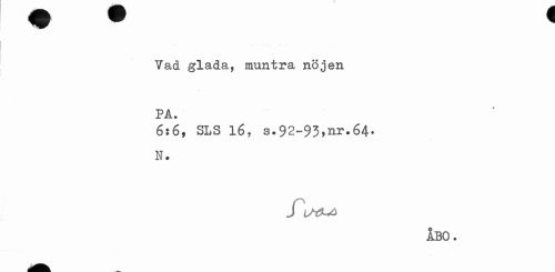 //// Vad glada, muntra nöjen PA. //// 6:6, SLS 16, s.92-93,nr.64. N. //// Jl/rSU) //// IBO. ////