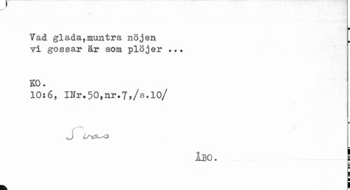 //// ¦ //// Vad glada,muntra nöjen vi gossar är som plöjer //// KO. //// 10:6, IIr.50,nr.7,/s.l0/ //// J Urf^o //// ÅBO. | ////