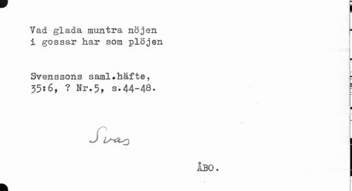 //// Vad glada muntra nöjen [ //// i gossar har som plöjen //// Svenssons saml.häfte, t //// 35:6, ? Nr.5, s.44-48. j //// ¦ //// 1 //// 0 //// U-CLq //// ÅBO. //// "s //// k ////