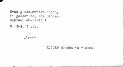 //// Hvad glada,muntra nöjen, Ti gossar ha, som plöjen. Neptuni åkerfält l //// Nr.364, 3 str. //// J iAtuo //// AUGUST BONDESONS VISBOK. ////
