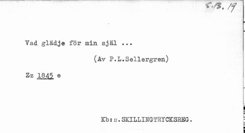 //// * //// Vad glädje för min själ . //// (Av P.L.Sellergren) //// Zz 1845 e //// L //// Kb is.SKILLINGTHYCKSREG. r //// A. ////