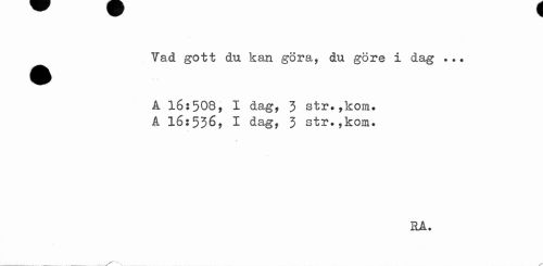 //// Yad gott du kan göra, du göre i dag ... A 16:508, 1 dag, 3 str*,kom. //// A 16:536, I dag, 3 str.,kom. //// * //// RÅ. ////