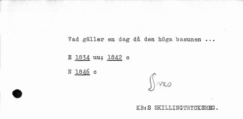 //// Yad gäller en dag då den höga basunen ... //// E 1854 uu; 1842 s N 1846 c //// j) ryhLO KB:S SKILLINGTRYCKSREG. ////