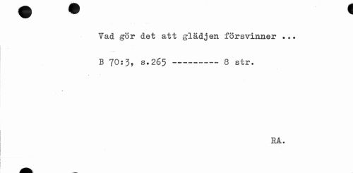 //// Vad gör det att glädjen försvinner B 70:3, s.265 --- 8 str. //// RÅ. ////