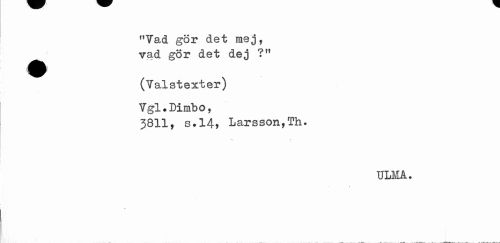 //// "Vad gör det mej, ^^ vad gör det dej ?" //// (Valstexter) Vgl.Dimbo, //// 3811, s.14, Larsson,Th. //// ULMA. ////