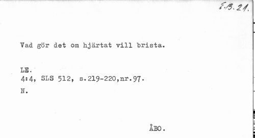 //// Vad gör det om hjärtat vill brista. LE. ' //// 4:4, SLS 512, s.219-220,nr.97. //// Ef. //// ÅBO. [ ////