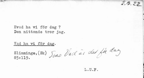 //// Htad ha vi för dag ? Den nittonde tror jag. //// Vad ha vi for da&. //// Slimminge, (Sk) C fäet oå/j^l ^ //// 85:119- ' //// j //// L.U.F. //// i ////