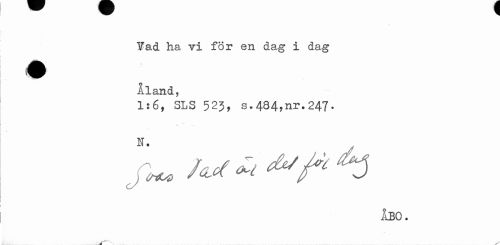 //// Vad ha vi for en dag i dag //// Iland, //// 1:6, SLS 523, s.484,nr.247- //// N. //// ÅBO. ////