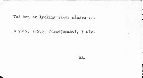 //// Vad han är lycklig säger mången ... B 98:2, s.255»Förnöjsamhet, 7 str. //// KA. //// t f- //// e= 1 ////