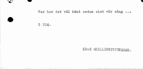 //// Var har det väl hänt sedan sist vår sång ... //// ^ G 224- //// KJ3-.S SKILLIIGTRYCKSHEG. //// • r " l ////