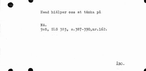 //// Hwad hiälper oss at tänka på NA. //// 9:8, SLS 383, s.387-390,nr.162. //// ÅBO. ////