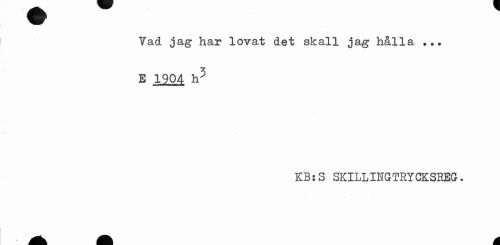 //// Vad jag har lovat det skall jag hålla ... //// E 1904 h5 //// KB:S SKILLINGTKYCKSEEG. ////
