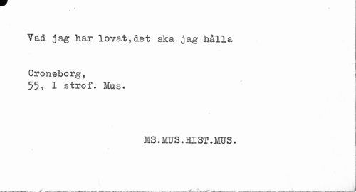 //// * //// Vad jag har lovat,det ska jag hålla Croneborg, //// 55 > 1 strof. Mus. //// MS.MUS.JU ST.MUS. //// 1 i ////
