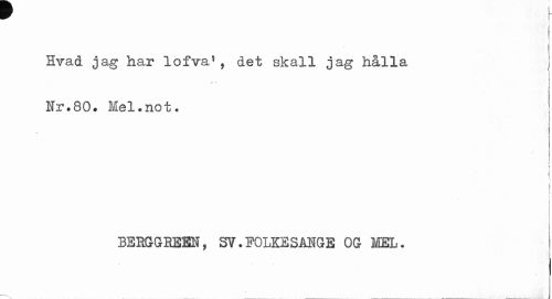 //// w r //// Hvad jag har lofva! , det skall jag hålla //// Nr.80. Mel.not« //// j //// 4 //// i //// \ //// BERGGBESK, SV.FOLKESANGE OG MEL. ////